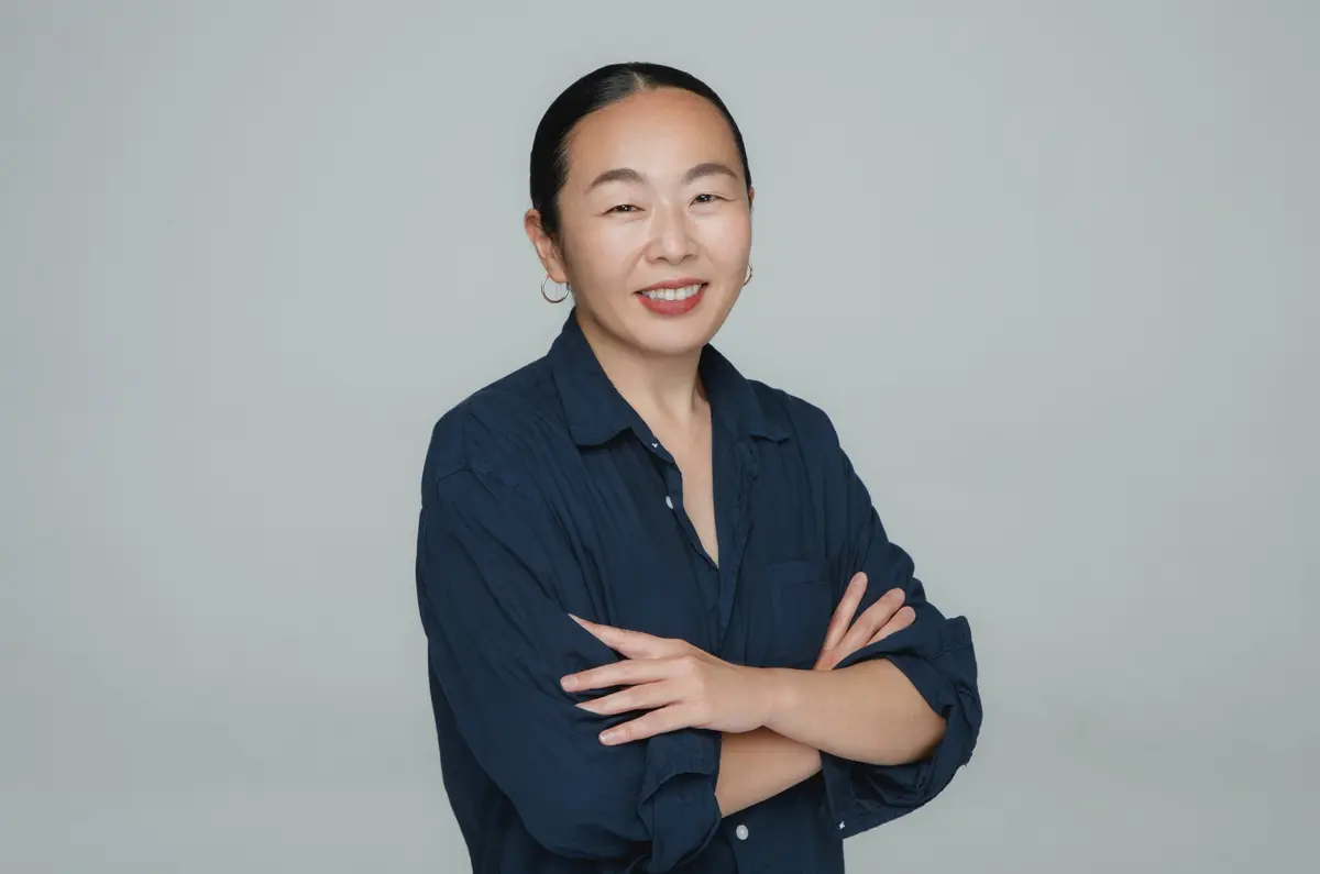 顔まわりのおくれ毛に、スタイリング剤をつける。マスカラ状のスタイリング剤は短い毛にも使いやすい。