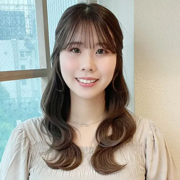 薄めのシースルーバングのおかげで顔まわりが軽く見えるから、夏のファッションにもばっちりハマる!