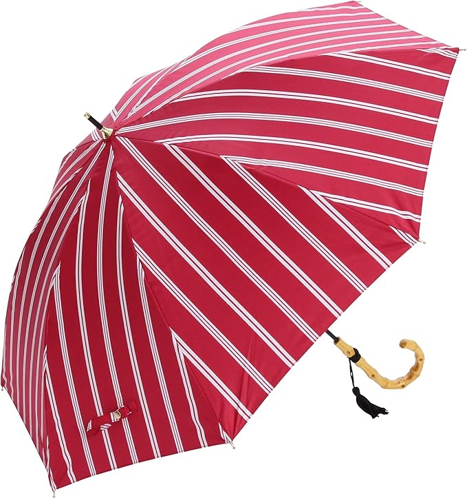 タッセルや竹の持ち手など、高級感のあるデザイン。遮熱効果に優れた一級遮光の生地を使った遮光性100%なので、これを差すだけで猛暑の日もだいぶ楽に感じるはず。晴雨兼用なので、急なゲリラ豪雨にもしっかり対応できます。