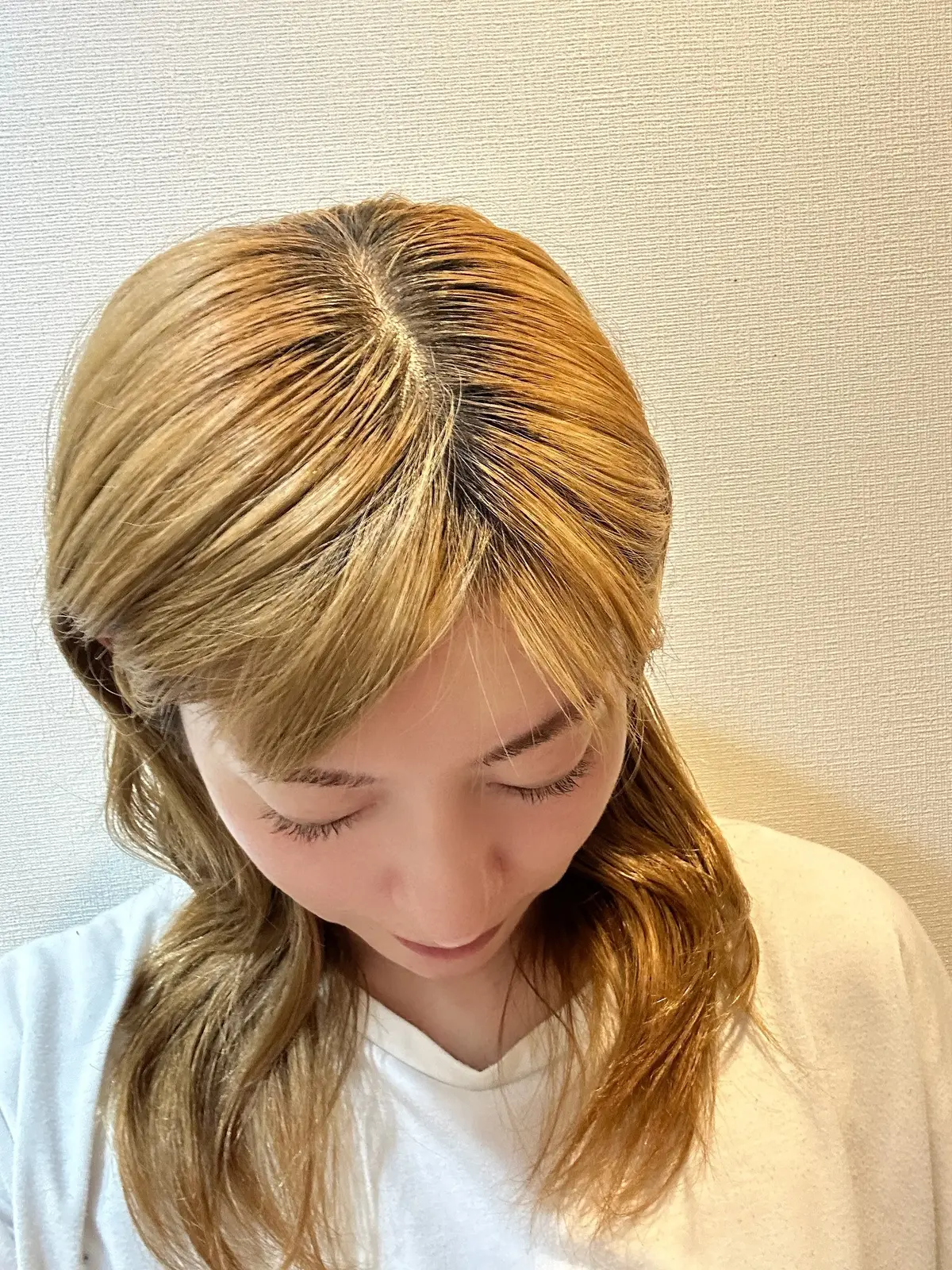 私はブリーチ&ヘアカラーをしてから約1ヶ月。根元が2cmほど黒くなり、見事なプリン状態。