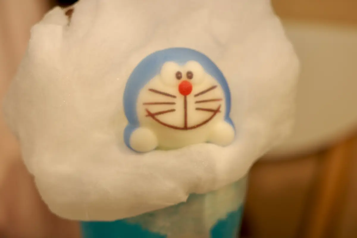 雲に見立てたわたあめの中に、マシュマロでできたドラえもんが顔を出していて、