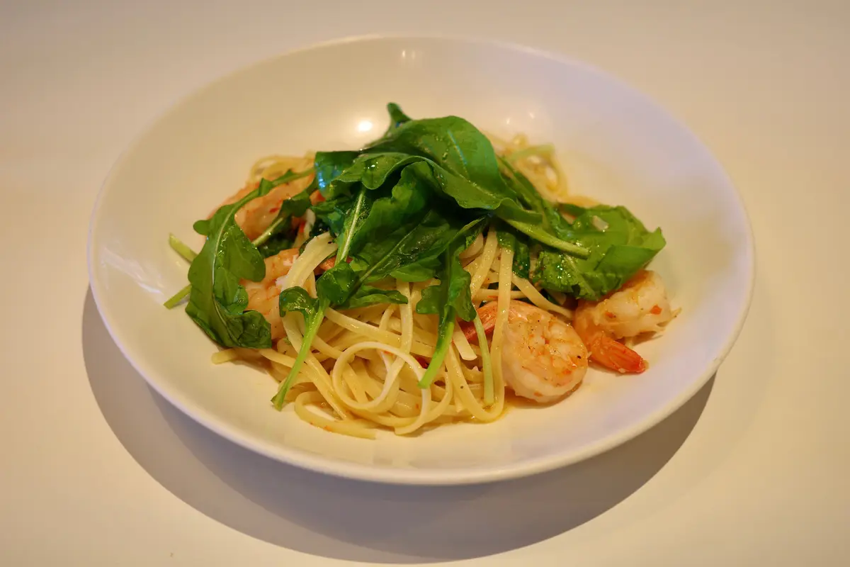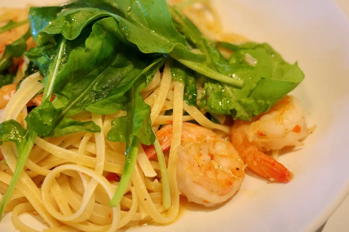 ぷりぷりの海老と、香り高いルッコラの組み合わせが絶品なリングイネ🦐