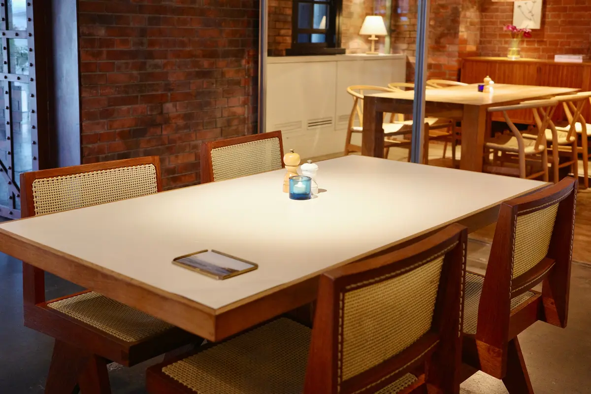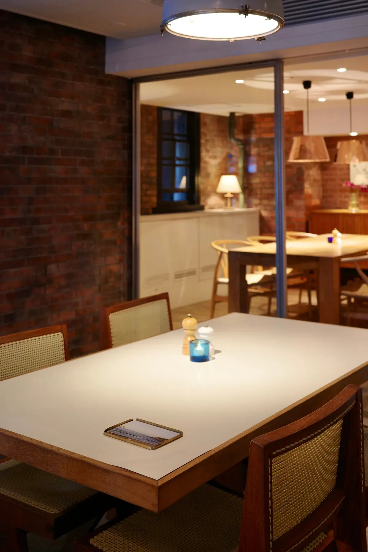 赤レンガの重厚感とキャンドルの柔らかい灯りが組み合わさって、