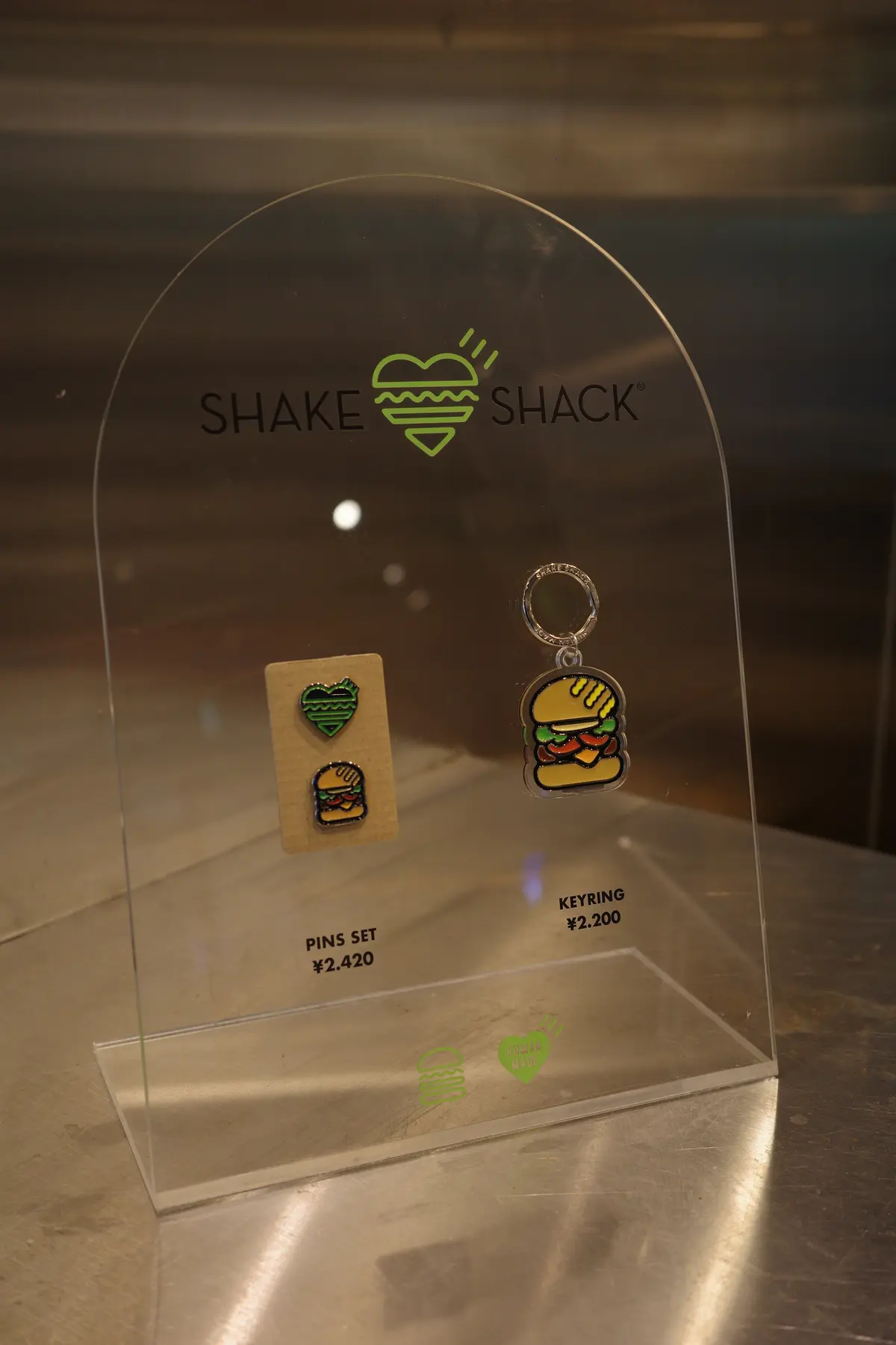 また、キーリングとピンバッジはShake Shackの店舗限定の特別なアイテム。