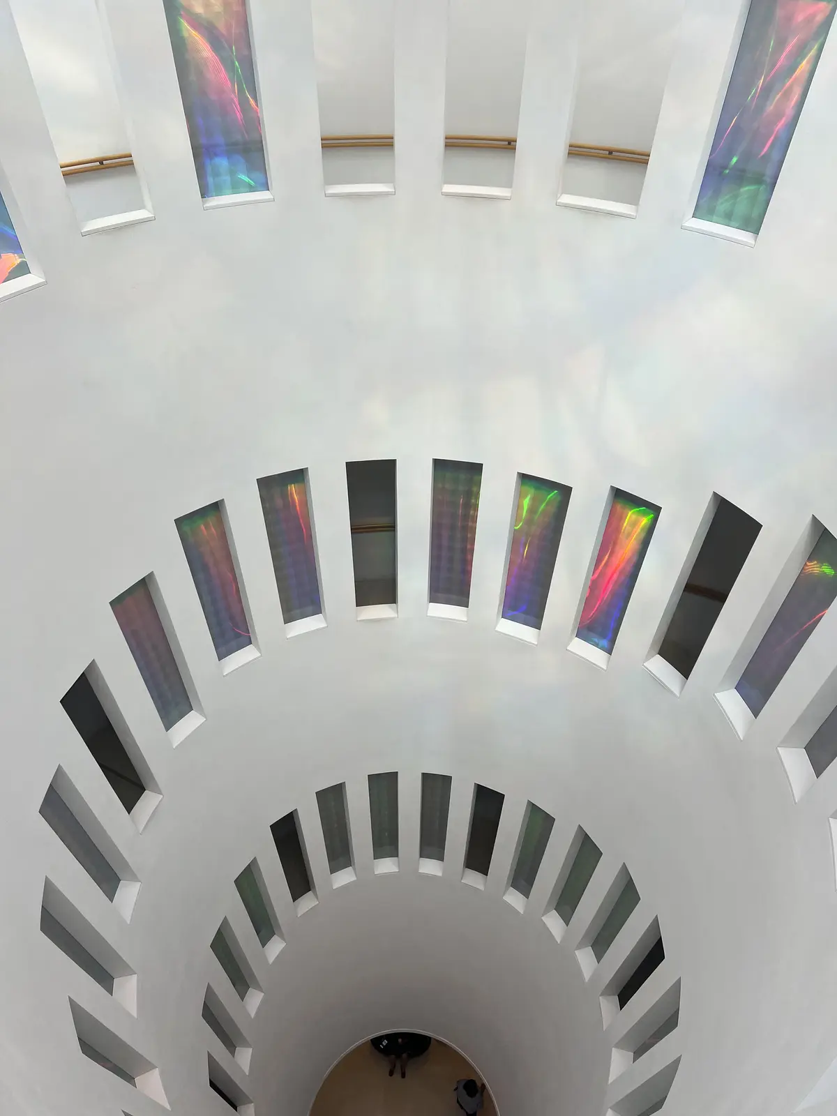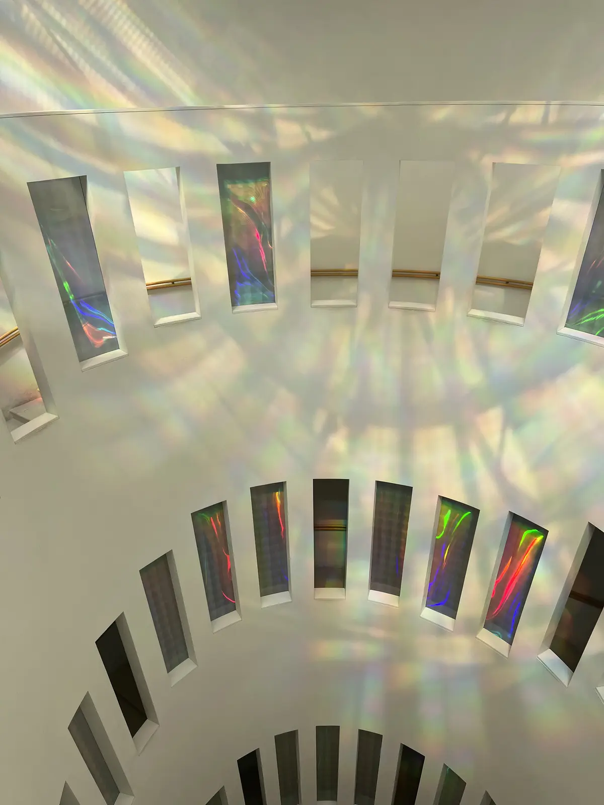 天窓から差し込む自然光がフィルムを通じて虹色に変化する光景は、思わず息を呑んでしまうもの。