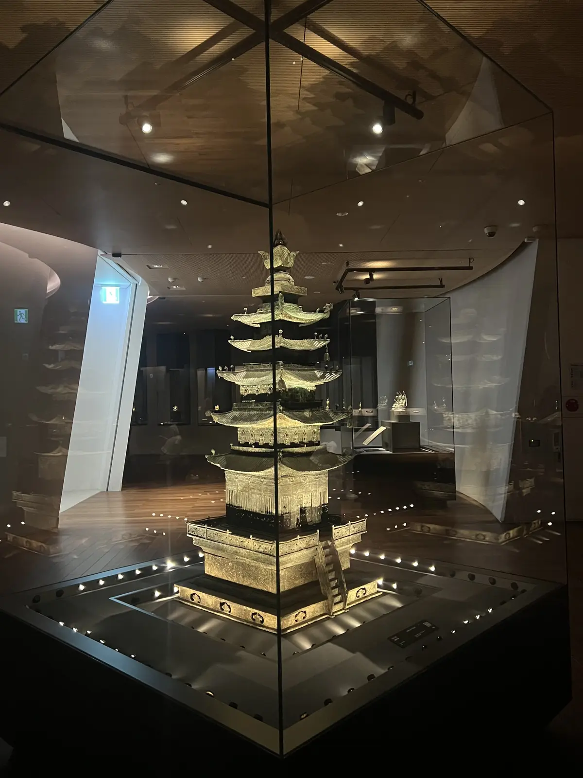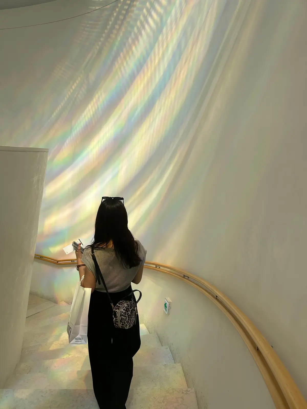 この作品は古美術エリアの4階から1階の各階を繋ぐ経路として使用されているため、階が下がるごとに光の入り具合が変わって見え方も変わっていくのも楽しいポイント🌈