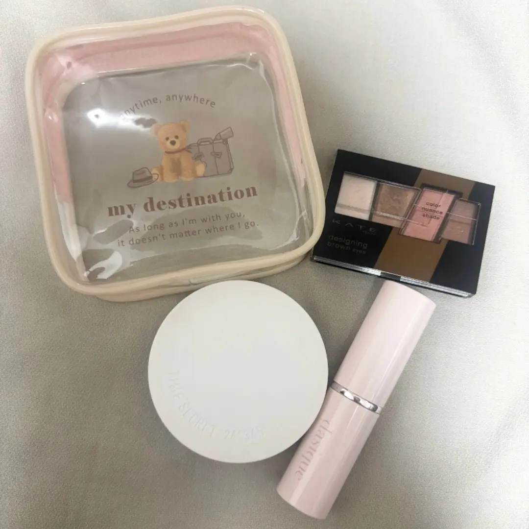 ポーチに入れるのは、フェイスパウダー・アイシャドウパレット・スティックハイライトのみで、リップは毎日2本くらい持ち歩いています♪