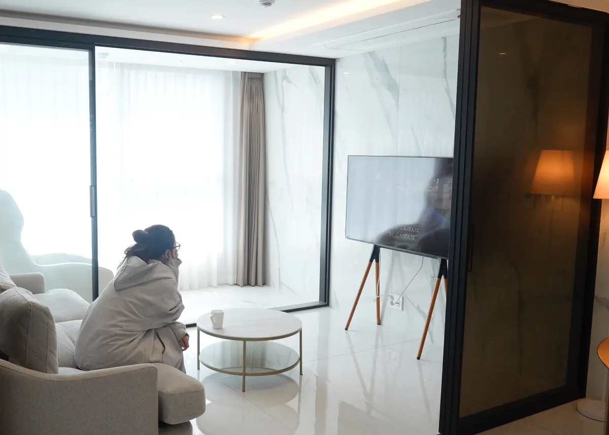 くつろぐ、観る、癒す。すべてがこのリビングで完結するため、予定をぎゅうぎゅうに詰め込まずに、“ホテルで過ごす時間”そのものを楽しみたくなります。