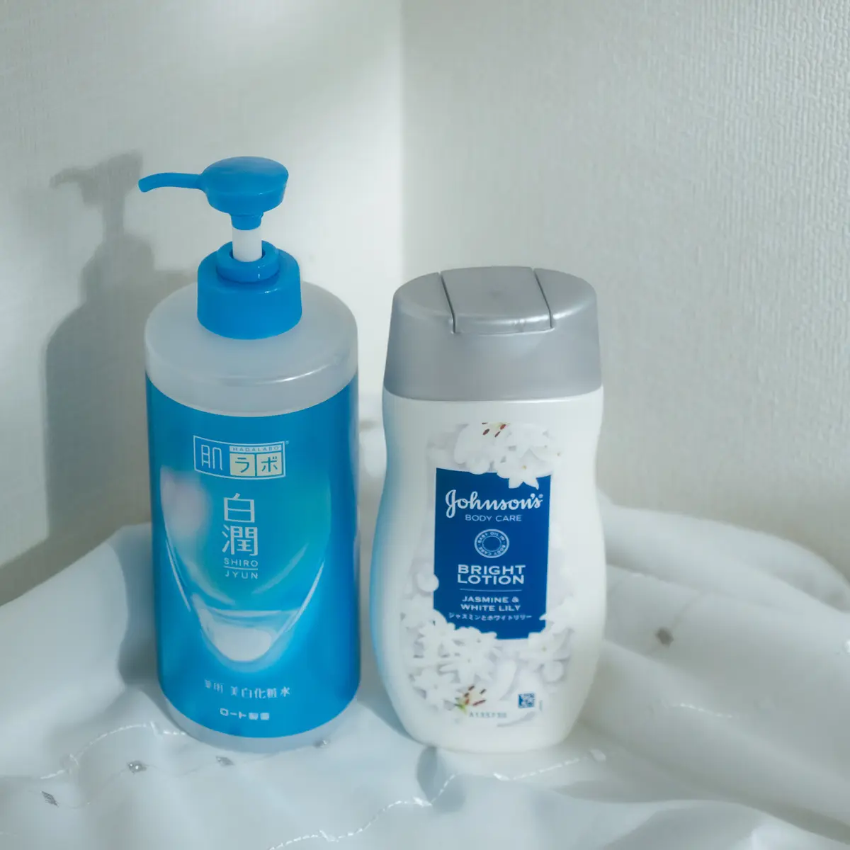 お風呂上りは、トラネキサム酸やビタミンC誘導体入りの化粧水とボディクリームを惜しみなく全身に塗ります!