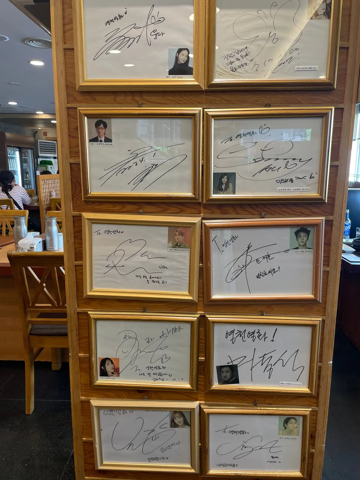 そのため、店内には芸能人のサインもたくさん飾っています。私の大好きな俳優チ・チャンウクさんのサインがあってテンションが高まりました。