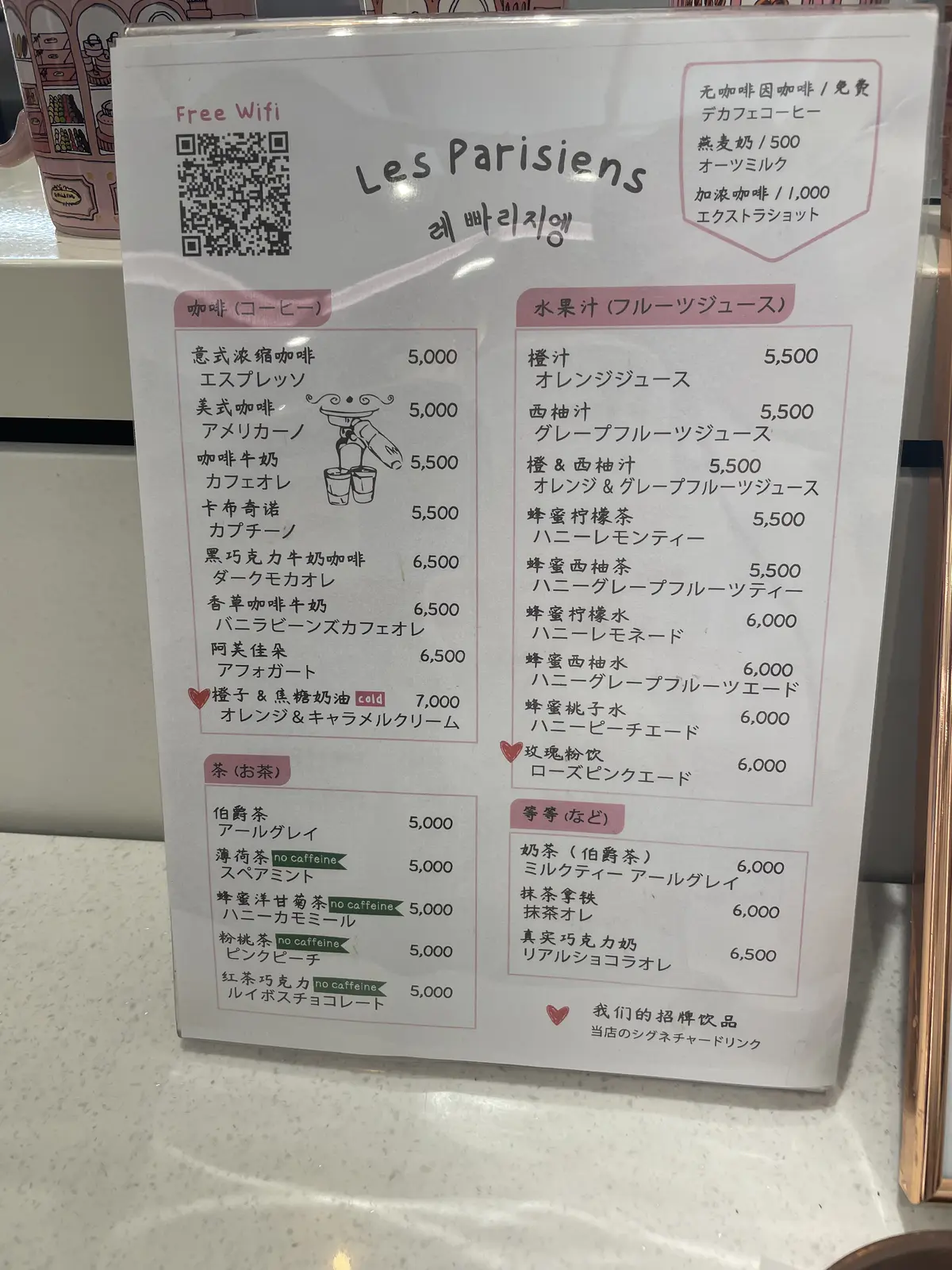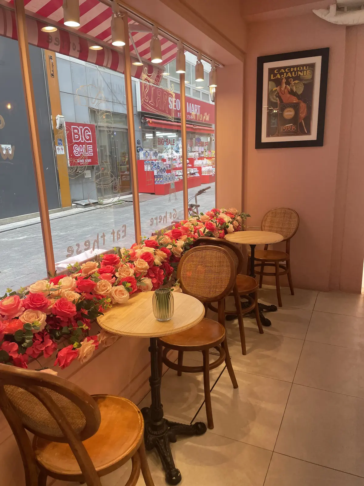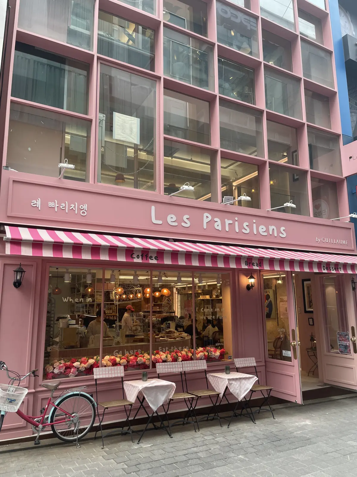 こちらは【Les Parisiens 明洞店】です。店内を見渡すと、ピンク・ピンク・ピンク💕もう可愛すぎて24時間居たかったです!どこを撮っても写真映えする、とっても可愛いカフェです🫖