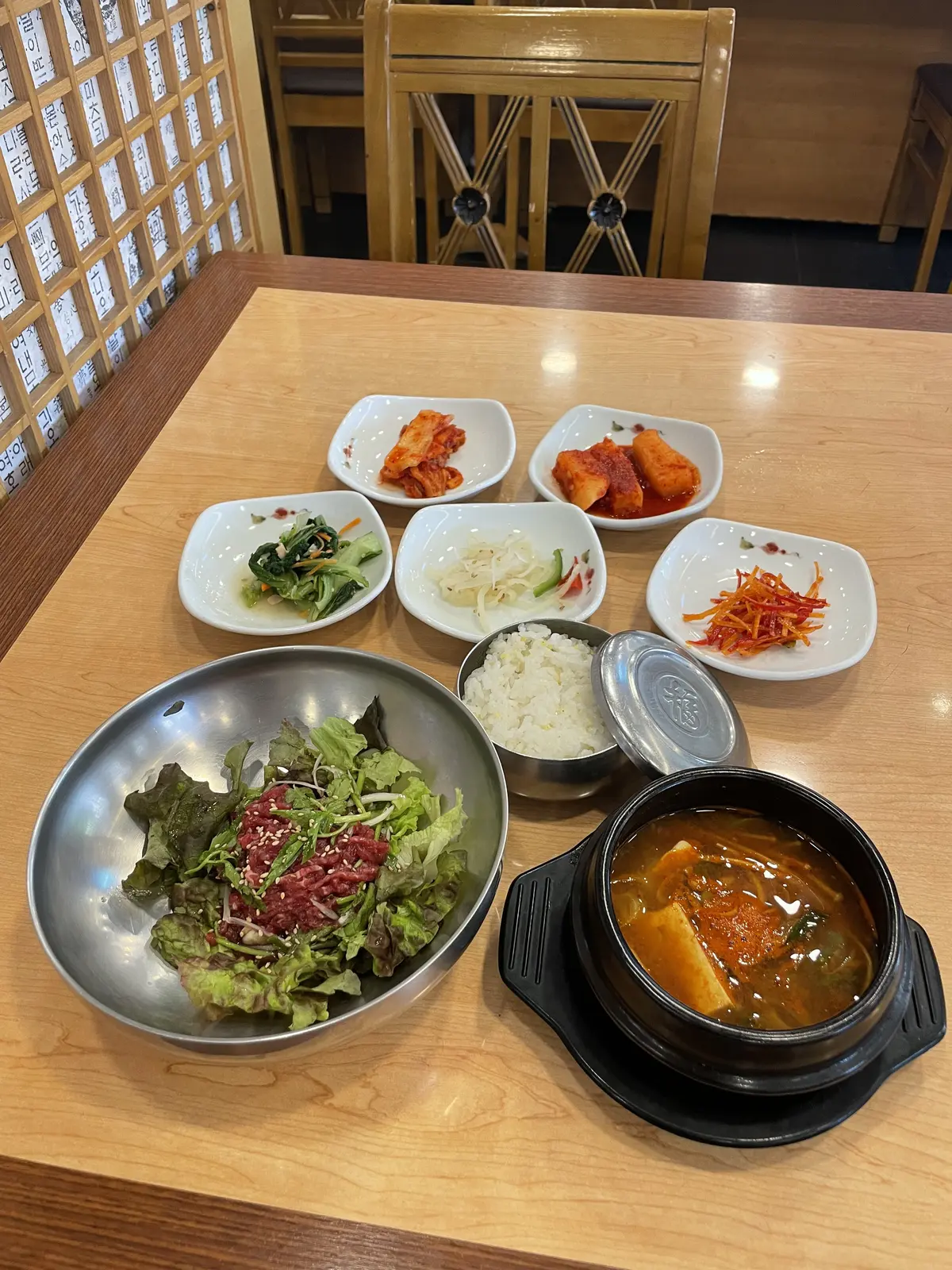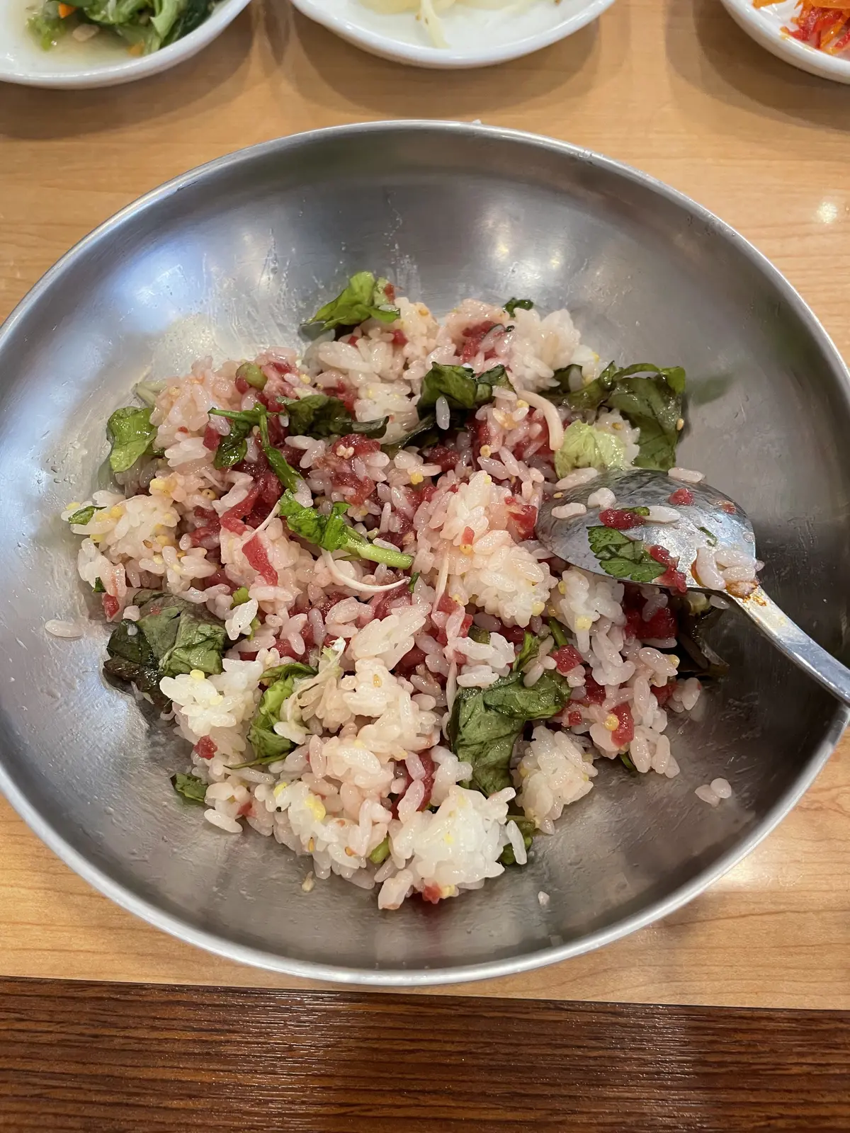 芸能人ご用達の元AKB48のさっしーが1日に4回も食べたことのある有名なお店です。こちらのユッケビビンバは、ごま油の風味なので凄く食べやすいです。ただ、セットのスープは激辛なので注意です⚠️