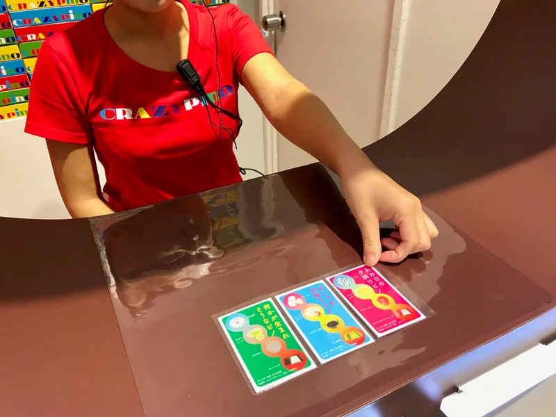 このブースでは自分が引き当てた「CRAZYpino」の内容を見ながら、使われる食材にアレルギーがないかをチェックします。もしもアレルギーに当てはまる食材が入ってしまっていた場合には、別の食材に変えてもらえます。 -