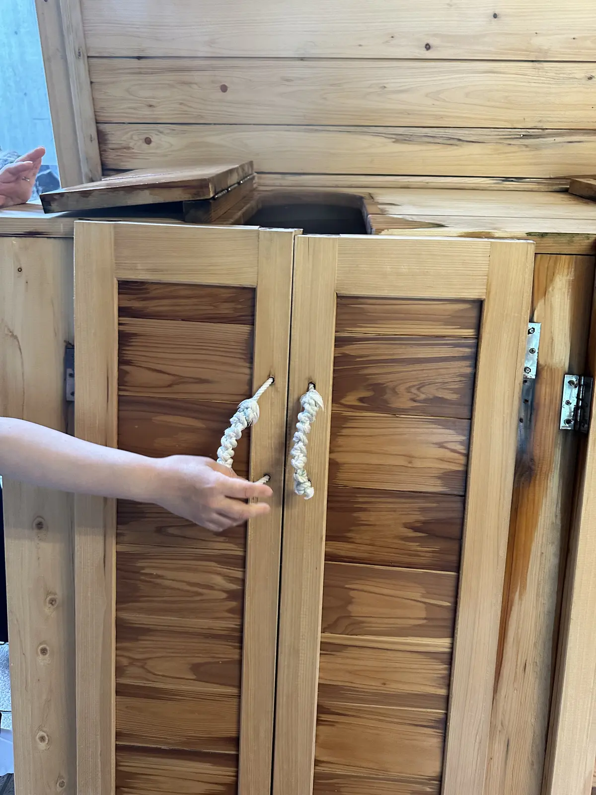 ヒノキの薫り漂う座るタイプ、穴ぐらで横になるタイプなどが4種類もあります。