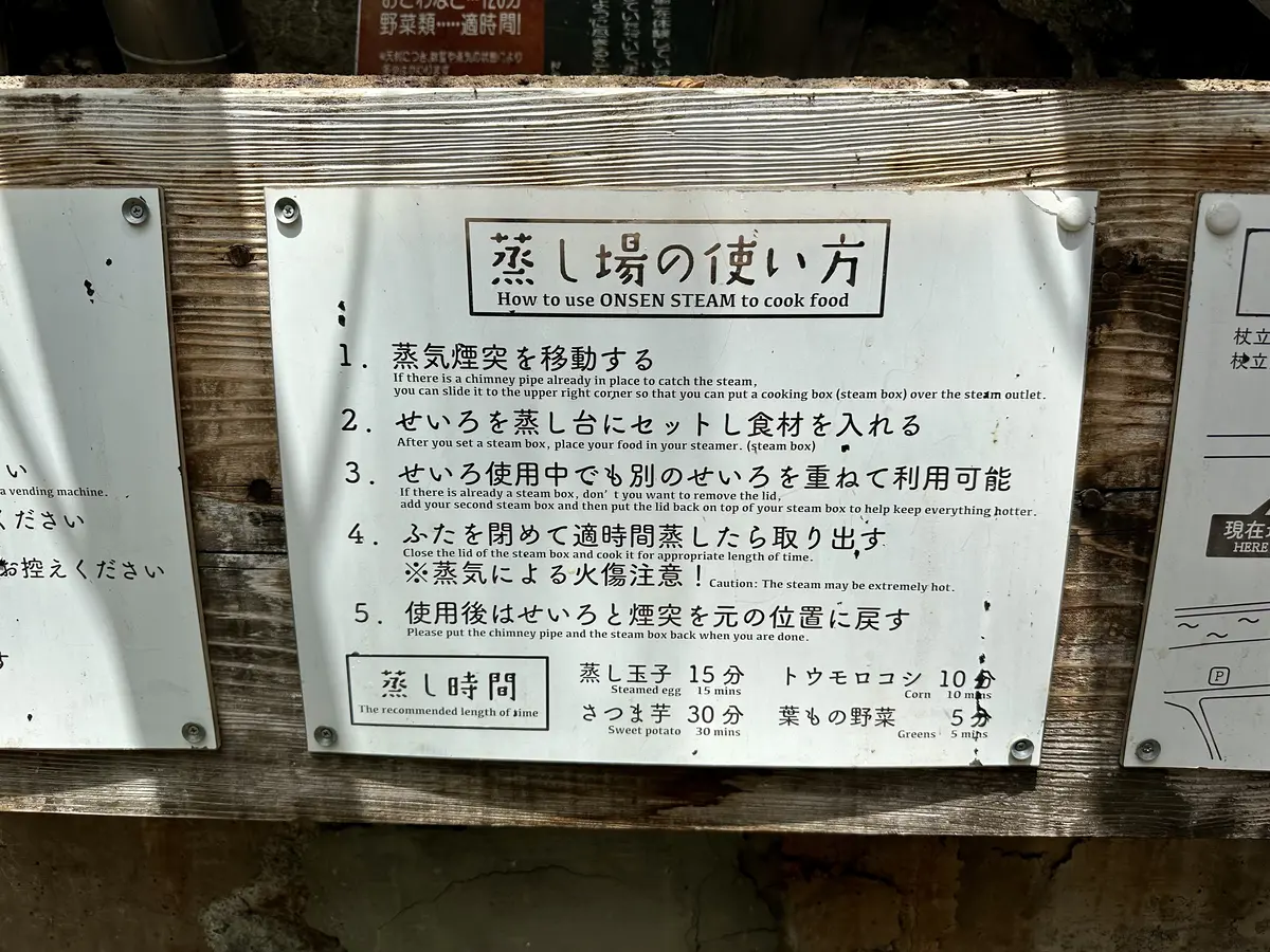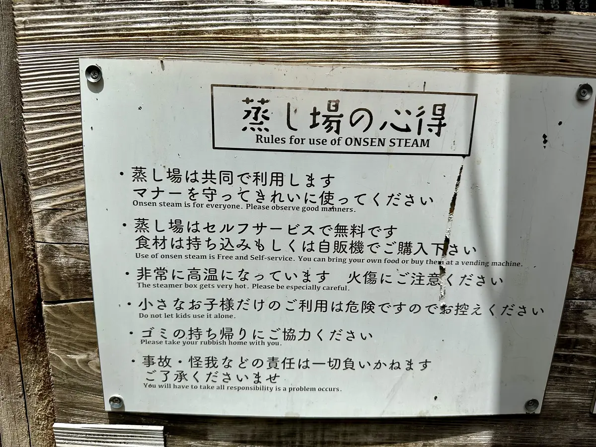 地元の憩いの場にもなる蒸し場ですが、「無料の蒸し場」と「有料の蒸し場」があります。使用する際は注意書きをしっかりと読んで使うのが良さそうです。