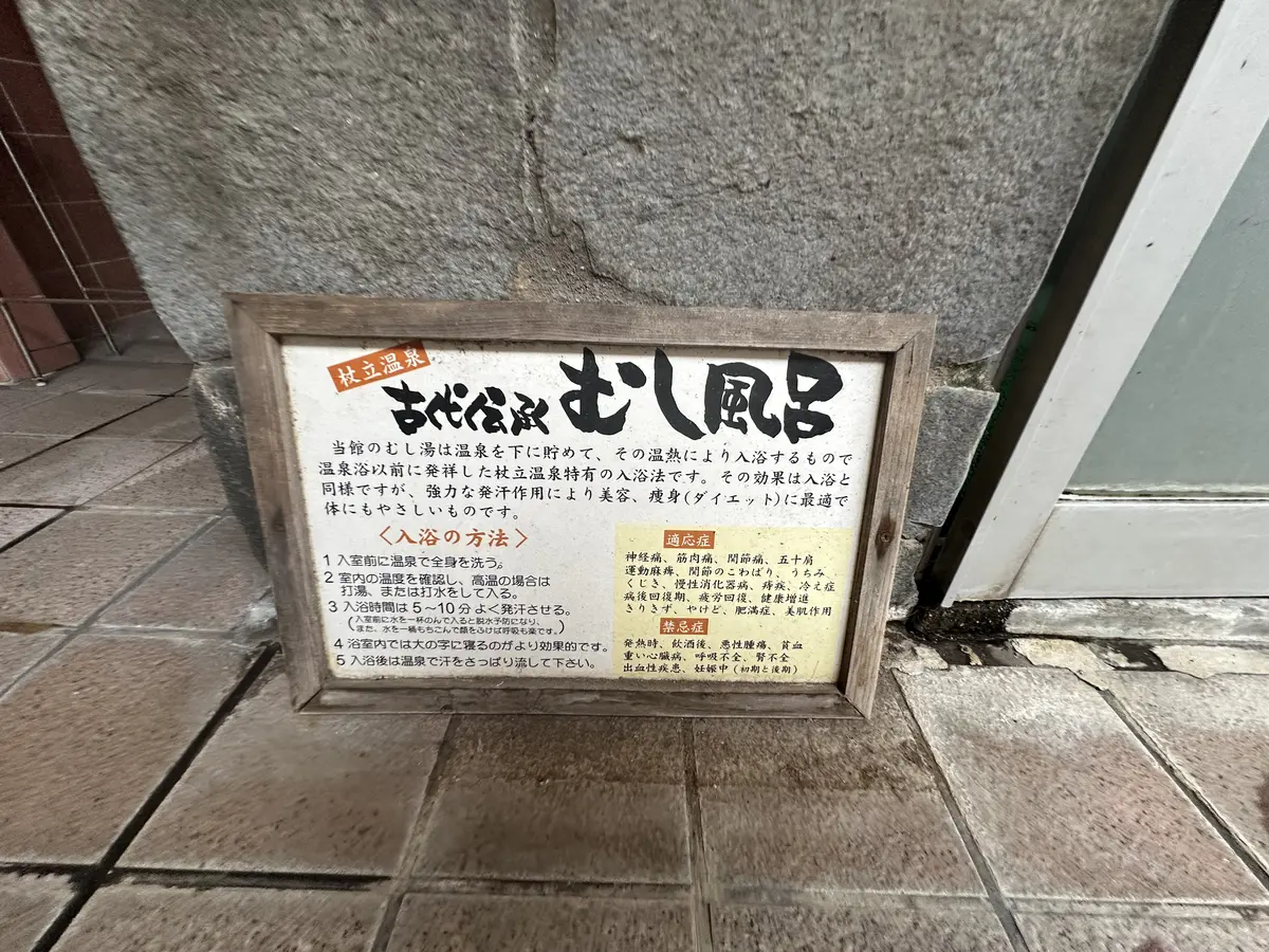 古代伝承「むし風呂」「蒸気サウナ(むし湯)」という気になりすぎる1人用個室サウナもありました。