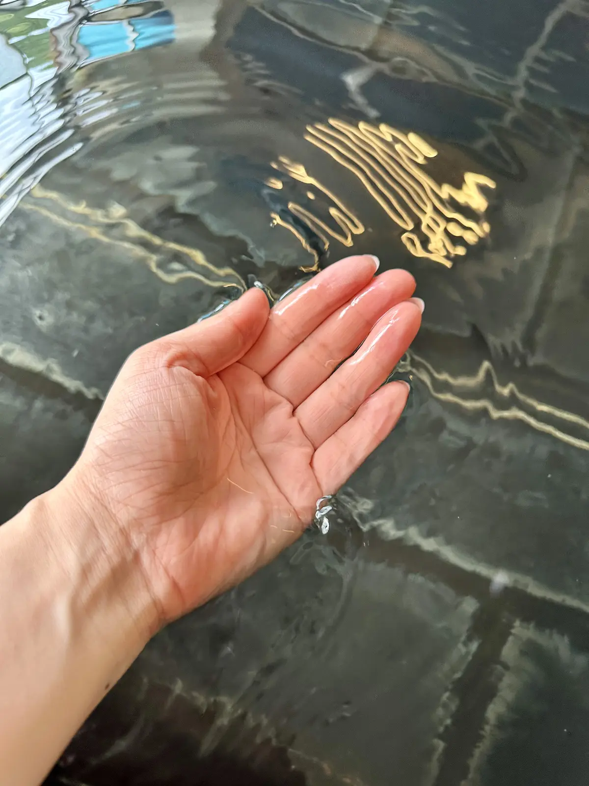 「泉屋」さんの温泉のお湯で髪を洗うと、普通のシャワーで洗うよりサラサラになると女将さんが教えてくれました。