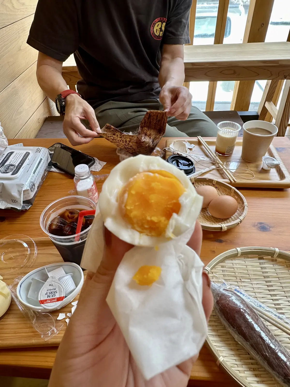 - 実食レポ!蒸し場で作ったゆで卵といきなり団子、現地のお店で食べる杖立プリンとさつまいもが絶品すぎた