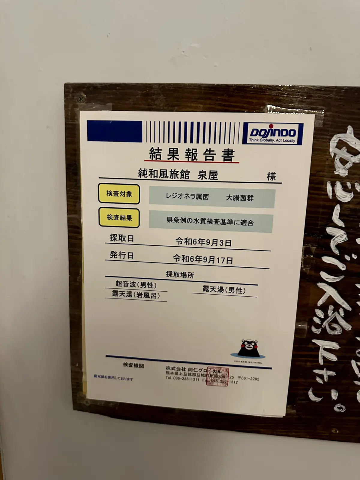 泉屋さんのお湯の効能と安全宣言もしっかりと記載がありました。