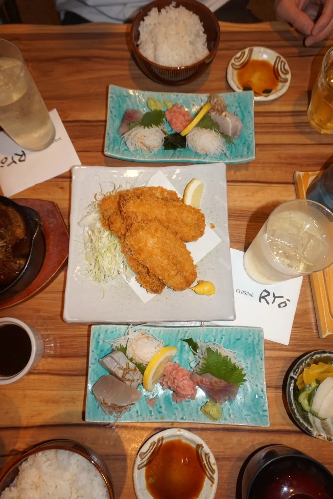 ここの定食はボリューミーでたくさんいろんな種類のお魚が出てきます!