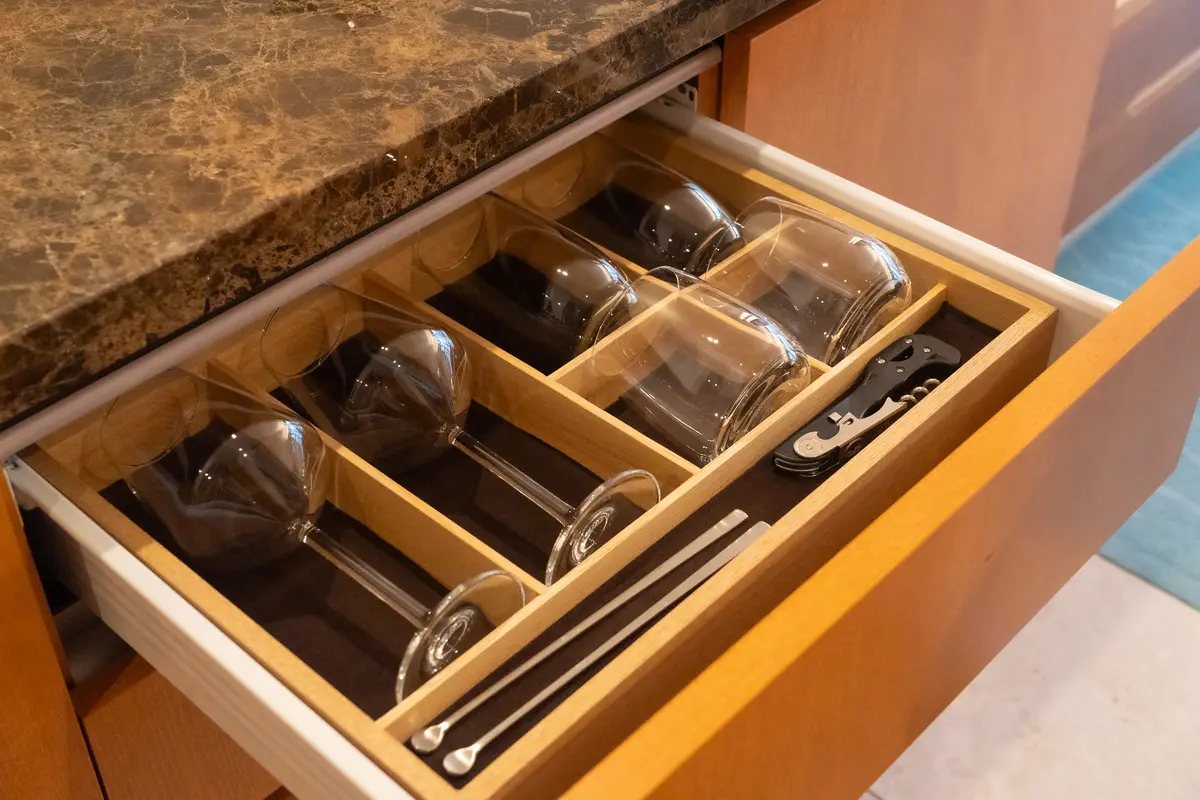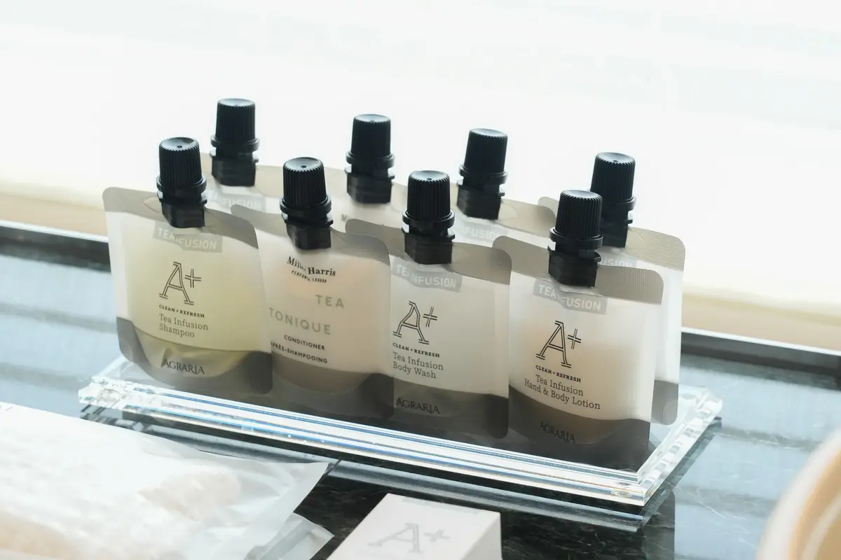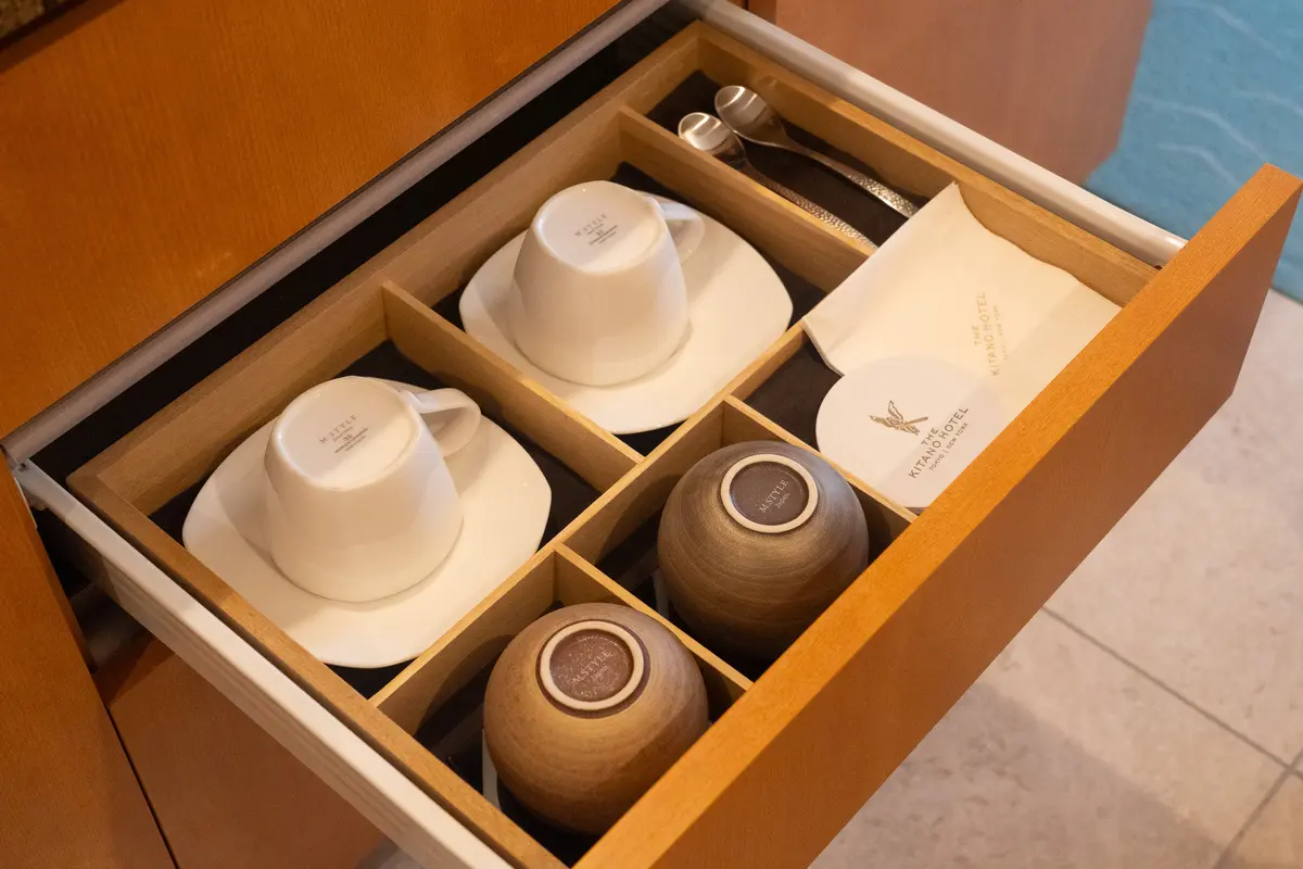 ワイングラスやガラスコップ、ティーカップなどの食器類もひと通り揃っていました。どれも上質な素材で統一されていて、ちょっとしたお茶時間や晩酌にもぴったり。ひとつひとつが上質なセレクトで、どれも手に取りたくなるようなラインナップ。宿泊中の快適さが、さらにひと段階アップするような贅沢なサービスでした。