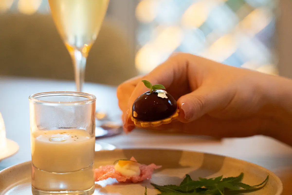 一番の魅力は、ワインやカクテル、ウイスキー、日本酒まで、幅広く取り揃えたこだわりのドリンク。料理との相性を大切に、ソムリエが提案するペアリングも好評だそう。昼下がりにはお茶とデザートで、夜にはお酒と語らいを。シーンごとに選べる一杯が、ひとときをより豊かに彩ります。