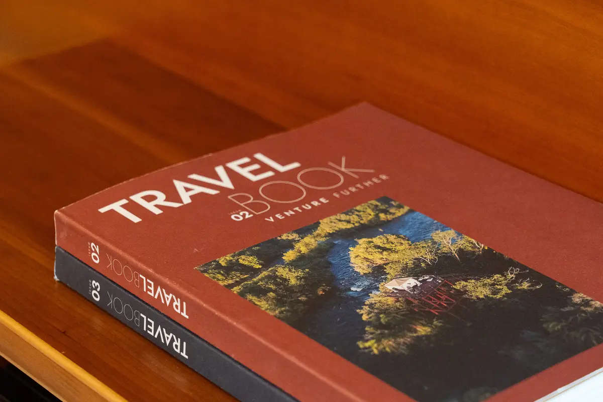 部屋の窓際には、水色のソファチェアとローテーブルが。柔らかな日差しが差し込むその場所は、まるで小さな自分だけの書斎のよう。ゆったりと腰を下ろし、用意されていたルレ・エ・シャトーの本を手に取りました。ページをめくるたびに、世界中の美しいホテルやレストランの物語が広がり、まるで旅をしているかのような気持ちに。静かな時間の中でじっくりと読書に没頭できるこの場所は、ホテル滞在の特別なひとときとなりました...!