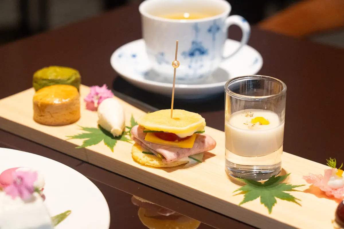 2階に位置する「ティーラウンジ佳風」では、季節ごとにメニューが変わるアフタヌーンティが提供されています。