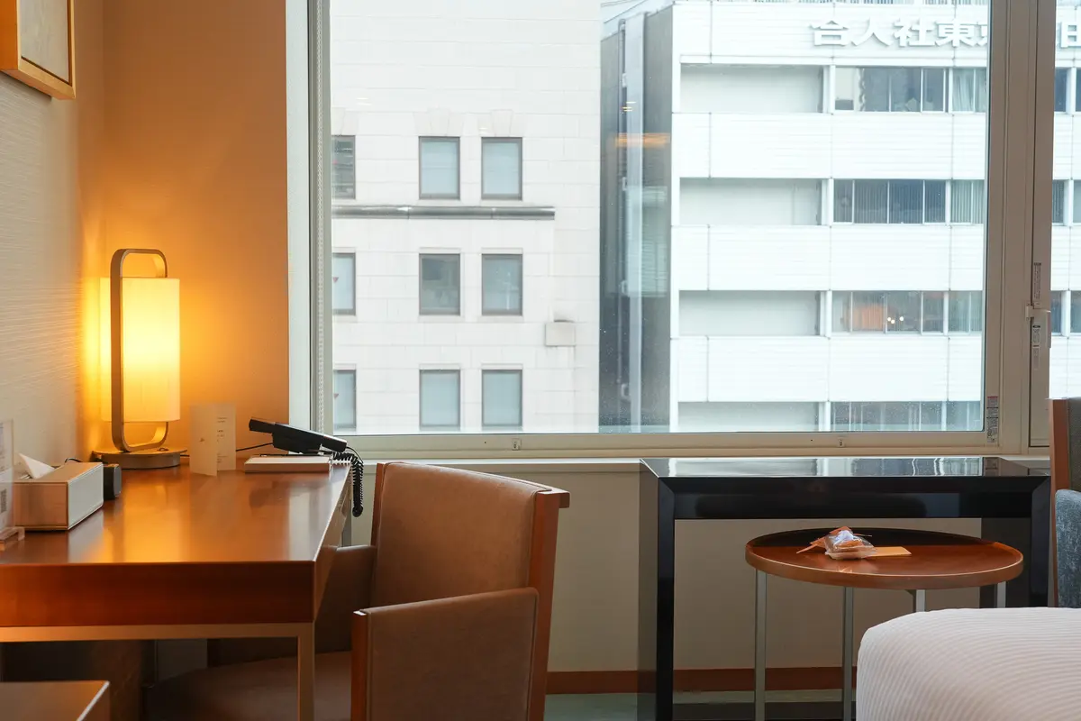 『ザ・キタノホテル東京』のエントリーカテゴリーにあたる「スーペリアルーム」は、窓際にソファとライティングデスク、そして部屋の中央にベッドを配置したゆったりとしたレイアウト。今回は2人で宿泊しましたが、圧迫感なく過ごせるのが魅力です。