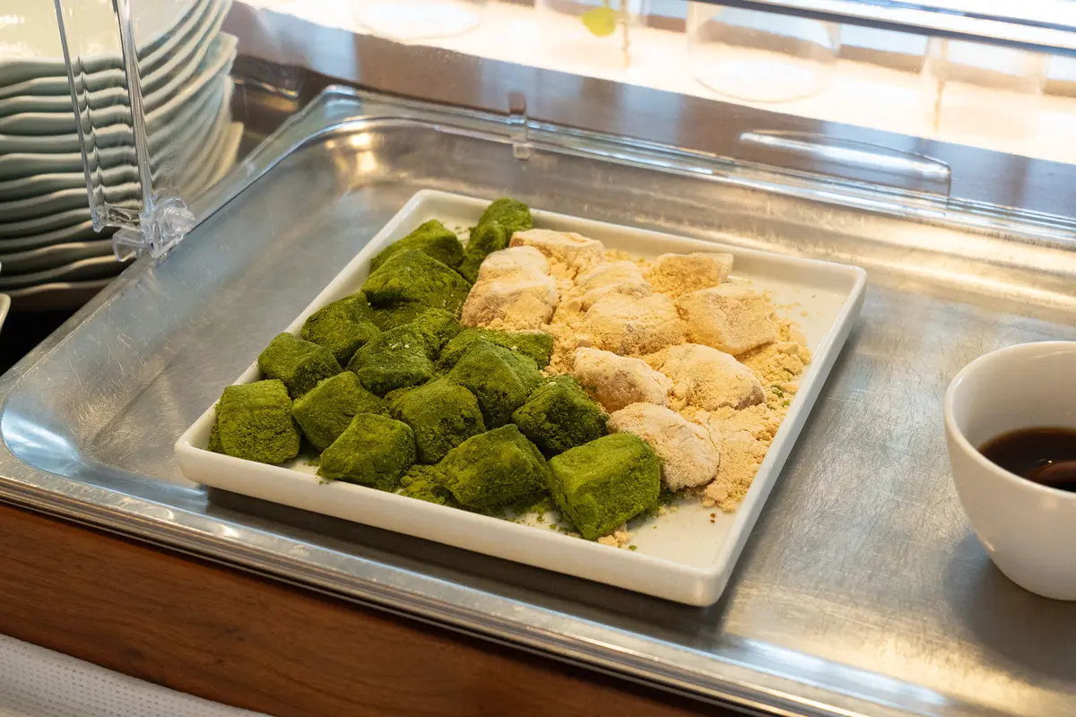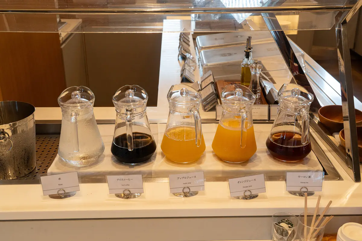 ソフトドリンクはとにかく種類が豊富。カルピス、オレンジジュース、アップルジュース、烏龍茶、ホットコーヒー、宇治抹茶グリーンティー、紅茶などから選べます。観光後のひと息や、朝食前のちょっとした水分補給にもありがたいラインナップ。甘すぎず飲みやすい宇治抹茶グリーンティーが個人的にはお気に入りでした!