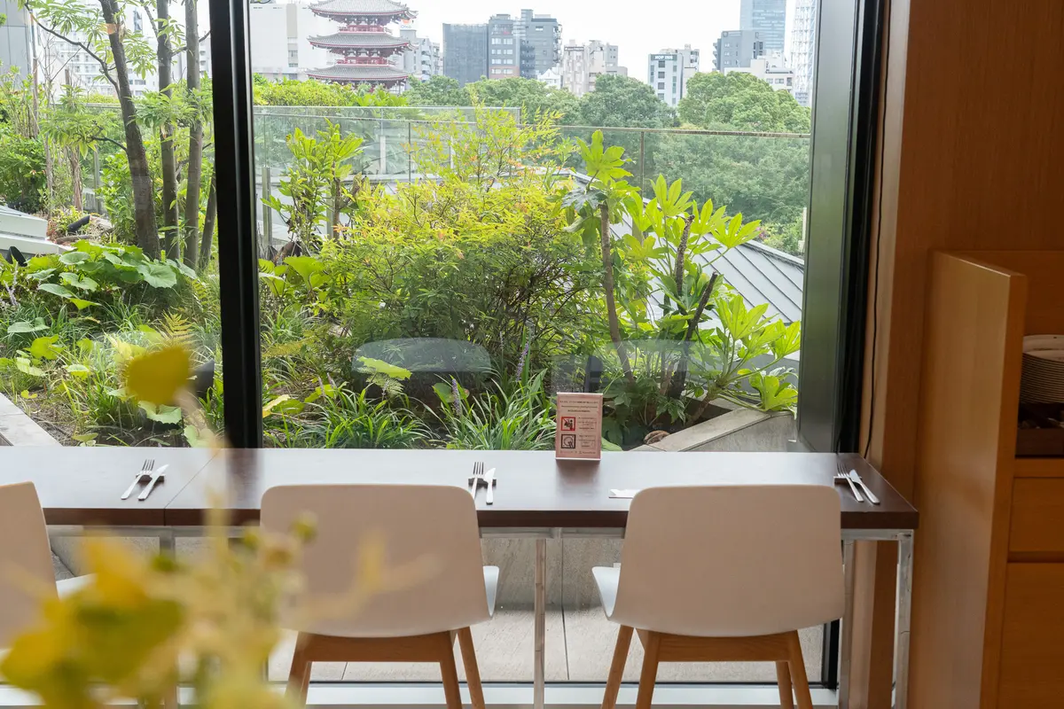 - お菓子とドリンク片手に、浅草の景色を眺めるくつろぎ時間