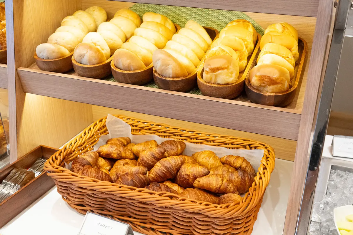 朝食は、5階ラウンジ「プレミアラウンジ」で。ビュッフェ形式で、和・洋・中のお料理がバランスよく並び、全体で約80種類以上という充実ぶり。ジャンルの垣根なく、さまざまなテイストのメニューが揃っていて、どんな朝の気分にも寄り添ってくれる構成でした。
