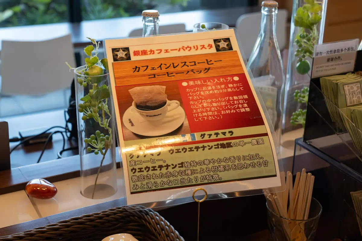 5階にある宿泊者限定のプレミアラウンジでは、13:00~16:00、17:00~20:00の時間帯にウェルカムドリンクと軽食を楽しめます。コーヒー、紅茶、ジュース、日本酒やワイン、お菓子類などが用意されていて、旅の合間にほっと一息つくのにぴったりでした。
