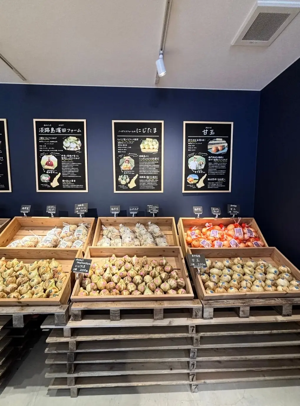 「淡路島玉ねぎ専門店」では、淡路島産玉ねぎを始め、旬な野菜、AWAJI BEER、平飼い卵など、淡路島のブランドを体感できるセレクトショップ。