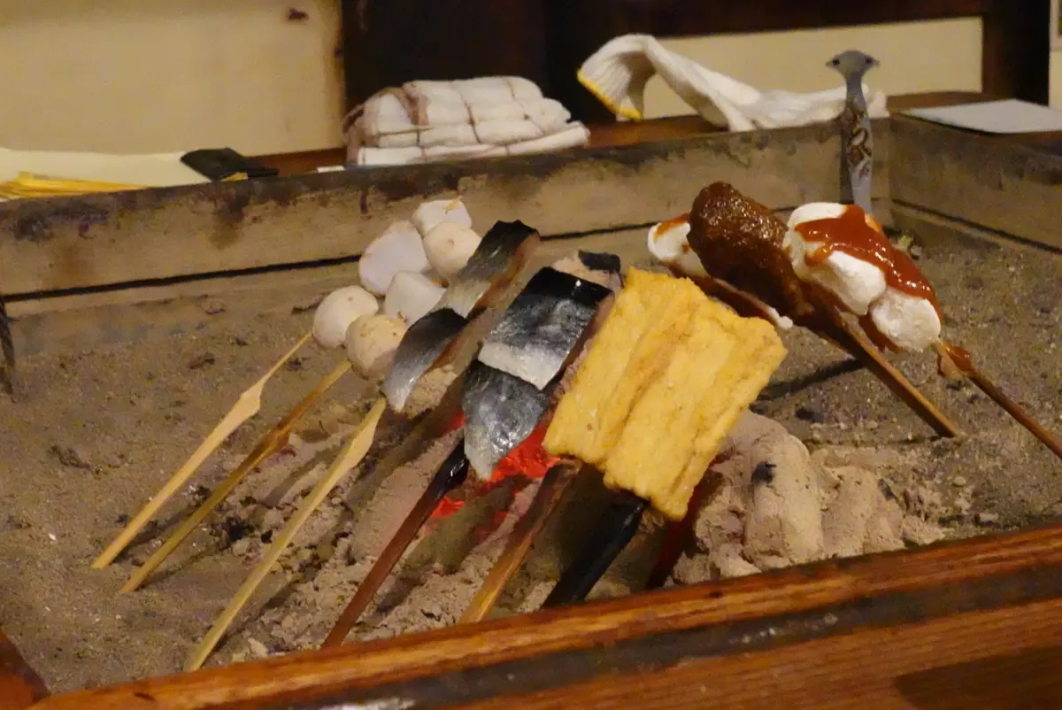 囲炉裏にはたくさんの焼き物が並ぶ。これからこの焼き物たちに、最高のお味噌がかけられると思うと、ワクワクが止まらない。